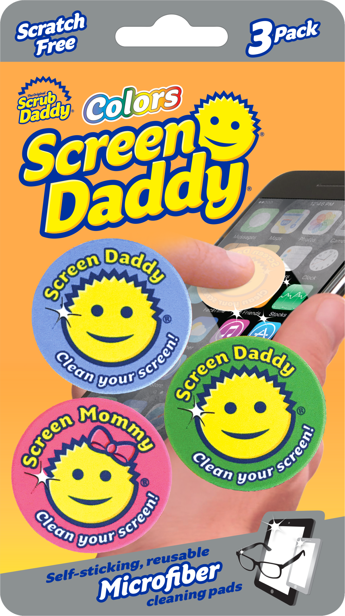 Keep your screens clean and smudge-free with the Scrub Daddy Screen Daddy 3 Count Bundle. This set includes 3 packages for a total of 9 reusable microfiber pads designed for your phone, tablet, or eyeglasses. Perfect for gifts and stocking stuffers.
